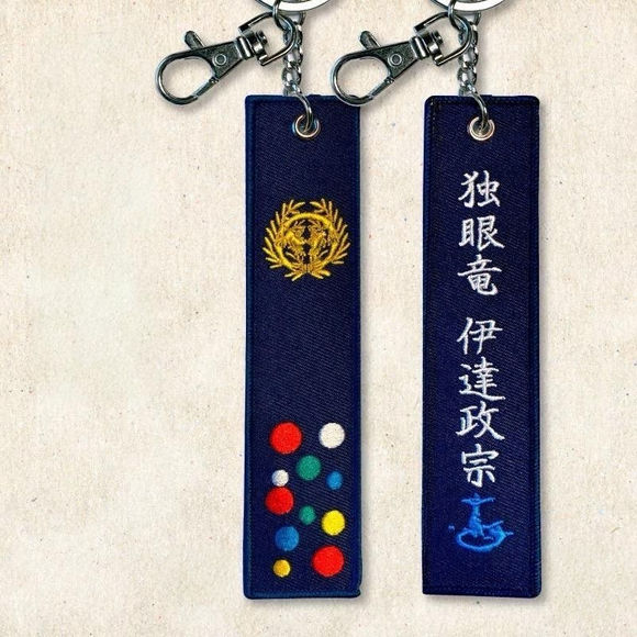 An embroidered keychain inspired by Sengoku-era Samurai warlords. It features embroidery on both sides, with a three-dimensional stitched design based on each warlord’s banner emblem (battle flag). Just wearing it makes you feel like a samurai standing in the midst of battle. The back side includes the warlord’s name.